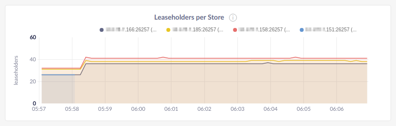 그리고 다음은 각 Store(Node) 별 Leaseholders의 수를 나타내는 그래프다.