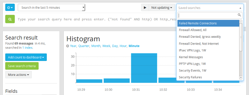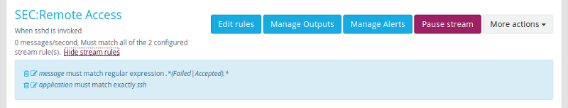 Graylog가 제공하는 편리한 기능 중 하나가, 이러한 Filter를 붙이는 작업을 웹 인터페이스를 통해서 직관적으로 할 수 있다는 점이다.