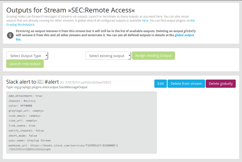 아래 그림을 보자. 먼저, 어떤 조건(condition)일 때 보낼 것인지를 지정할 수 있는 상자가 있고, 그 아래에는 이미 설정된 조건을 표시하고 있다. 그리고 그 아래에는 아까 만들었던 출력(Output)과 복수로 연결할 수 있는 설정을 제공한다. (이런 N:N 구조도 매우 중요한 요소인데, 볼수록 디자인이 잘 된 시스템이라는 생각이 든다. 아쉬운 부분 중 하나는 이 시스템 차원의 Output 외에, 사용자 기반으로 설정되는 것이 없다는 점.)