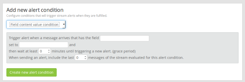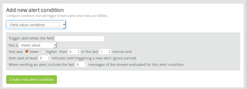 이 필드를 근거로 지정하는 경보는 위의 그림, 그리고 아래의 그림과 같이 두 가지 종류가 있다. 특정 기간 동안 값의 변화/유지를 고려하는 위의 설정과, 단지 그 값을 보는 아래의 설정이 그것이다.