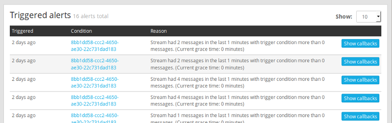 위의 그림에서, 조건 부분을 자세히 보면, 단위 시간 동안 몇회 이상의 로그가 도착했을 때 등의, 메시지 빈도 등에 의한 설정을 제공하고 있다는 것을 볼 수 있다.