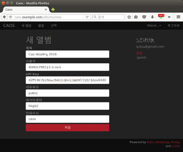 뜻하지 않던 파일 공유도 할 겸, SoftLayer의 Object Storage에 대한 API 시험도 할 겸 간단하게 Web Application을 하나 만들어봤다. 이름하여 CAOS. Cloud Album on Object Storage를 줄여 만든 이름이다.