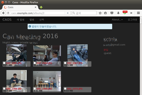 다시 앨범을 클릭하여 앨범 페이지로 진입하면, 이제는 보이지 않던 Thumbnail도 만들어져 있는 것을 볼 수 있다. (물론, 이 과정은 시간이 소요되는 과정으로, 맨 처음 볼 때에는 많이 느리게… 만들어진다.)