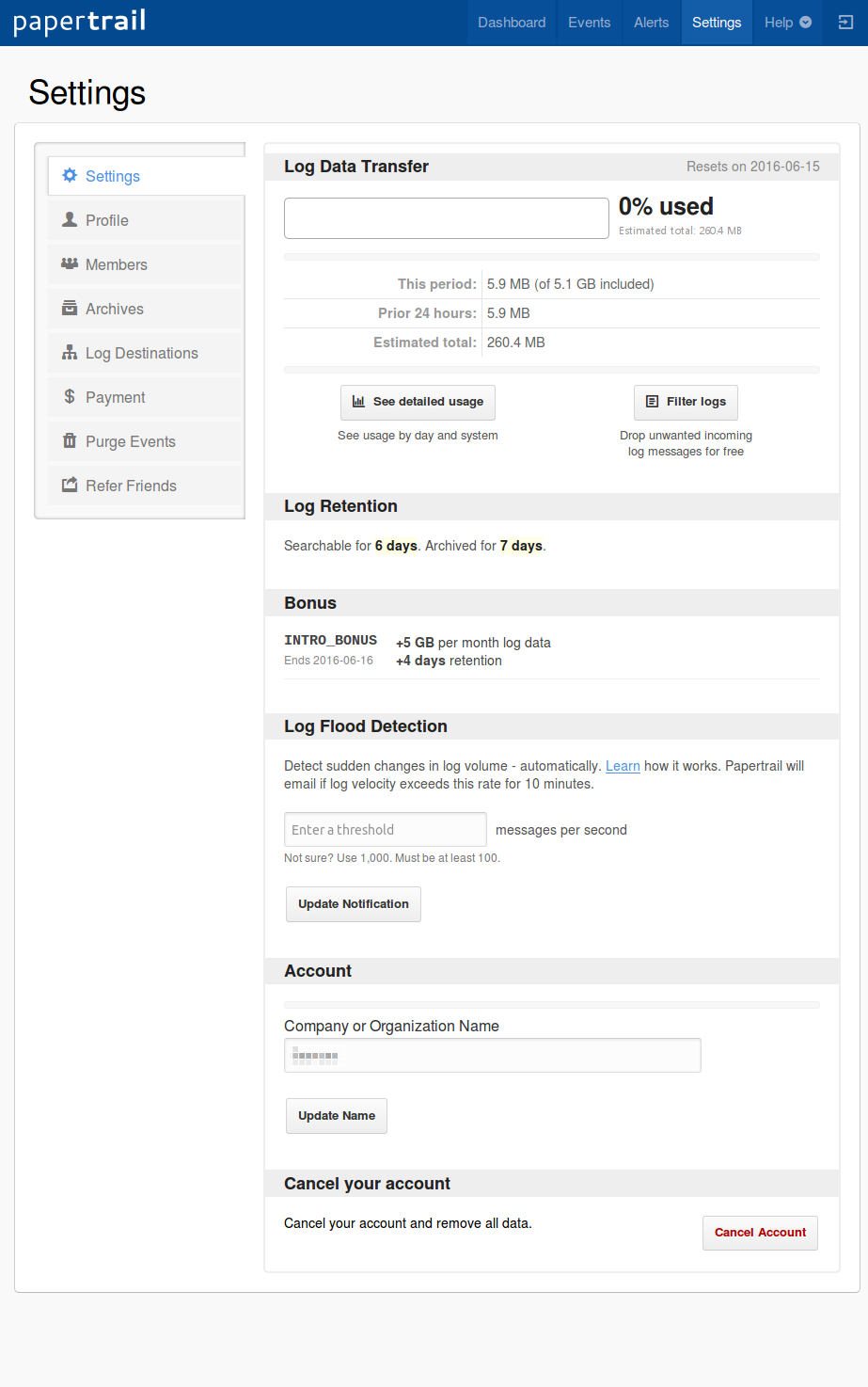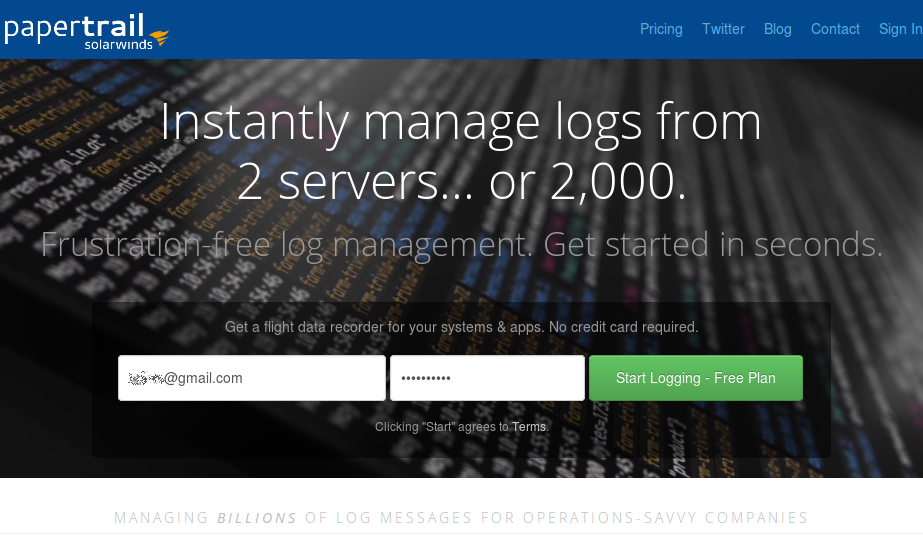 홈페이지 https://papertrailapp.com에 접속하면, 아래와 같은 화면을 만나게 된다.