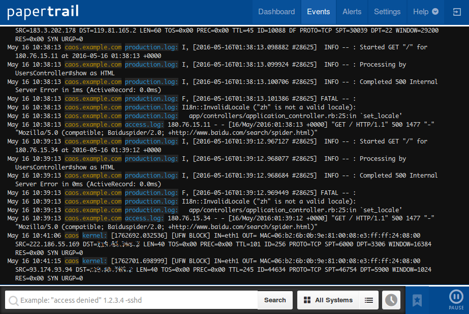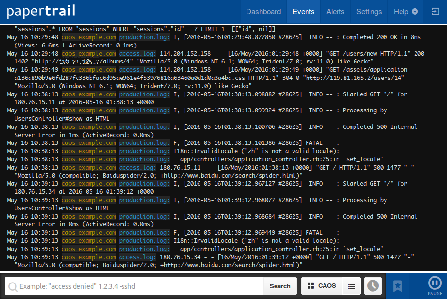 심사숙고한 것은 아니지만, 지난 번 글의 주제였던 클라우드스러운 앱, CAOS 웹앨범을 만드는 과정에서, 로그 역시 Cloud 스럽게 저장해보고자 급하게 선택했던 서비스가 바로 Papertrail이다.