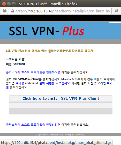 접속 페이지에서 위쪽의 링크도 같은 것인지 확인해보니, 이건 다음과 같은 안내문이었다. 아마도 좀 개발된지 오래된 SSL VPN 제품을 VMware에서 사서 사용하는 것 같다. 기왕에 좀 깔끔하게 수정 좀 하지…