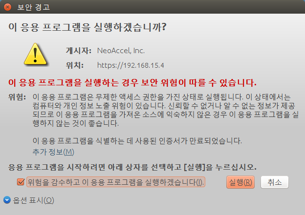 그리고 클릭하라는 곳을 클릭하고 설치를 시작하면, 다음과 같이 NeoAccel이 게시자로 되어있는 설치 프로그램이 동작하게 된다.