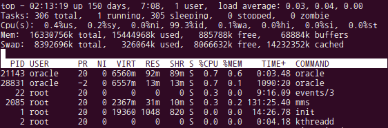 이제 아래와 같이, 폭주 Thread는 7개로 줄었고, 부하 역시 16 정도로 떨어졌다. 이 상황이 되면 이제 신규 사용자 요청은 정상적으로 처리되기 시작했을 것이다. 참고로, 폭주 자체는 일부 사용자의 반복적인 요청(잘 안되니까 다시 시도하는 등)에 의한 경우도 많다.