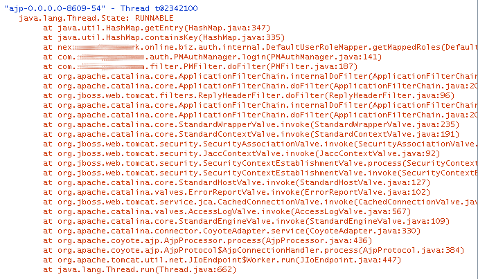 Thread의 Call Stack을 봤더니, 아래와 같이 HashMap Class의 getEntry()라는