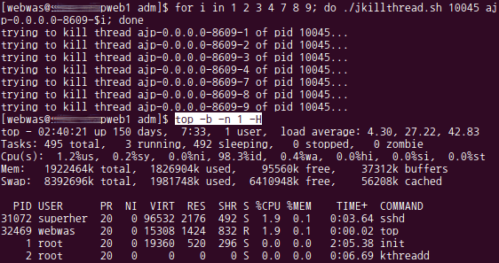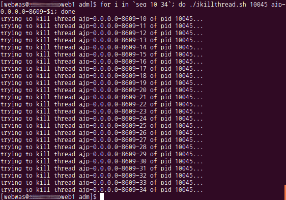 jkillthread라는 도구는, Thread 단위의 제어를 해보려고 인터넷을 뒤지다가 만난 귀인인데, JDK 6 이상에서 동작하는 Thread Snipper 다. https://github.com/jglick/jkillthread 에서 Apache License 2.0으로 배포되는 소스를 구할 수 있으며, Maven으로 컴파일할 수 있도록 구성되어 있다. 스크립트는 내가 간편하게 구동하려고 작성한 것이니 무시 가능하다.