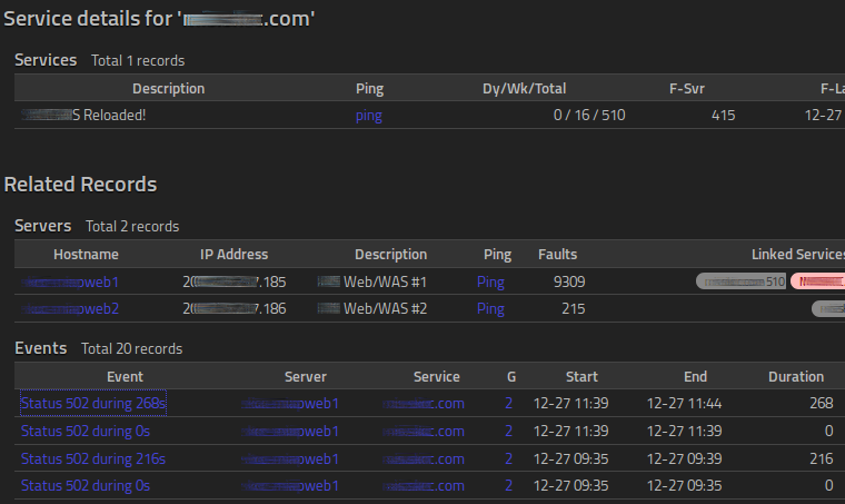 사실, WAS 상태가 잡힌 화면에서 Ping이라는 링크는 이러한 기능을 위해 임시로 구현해 놓은 “Service Ping"이라는 기능으로, WAS의 Thread/Memory 등의 상태를 포함하여 DBMS 연결 상태 등, 서비스 구성 요소의 전반적인 상태 값을 확인하는 기능인데, 아직 조치까지 이어서 활용하기는 어려운 상태.