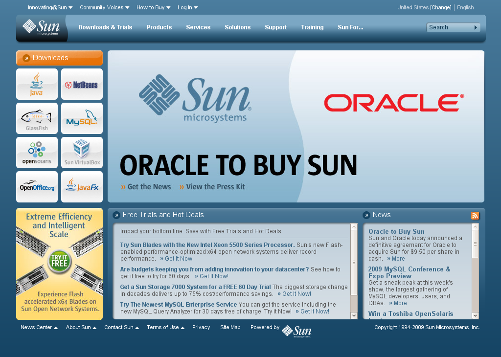아쉬움 속에 사라져가는 썬마이크로시스템즈 역시, 최근에 MySQL AB 사를 인수하고 Innotek를 인수하는 등, 전통적인 하드웨어, OS, Java Platform(그리고 그 개발환경)과 함께 오픈소스 기반의 소프트웨어 인프라를 확장하려는 움직임을 보여왔었다.