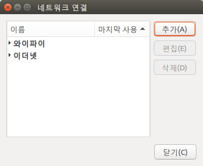먼저, 우측 상단에 위치한 네트워크 설정 부분의 “연결편집” 메뉴나 “가상 사설망 설정” 메뉴를 이용하면 아래와 같은 대화상자를 볼 수 있다.