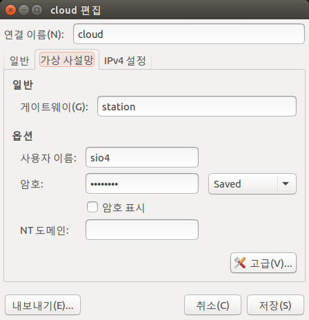 “사용자 이름“이나 “암호“는 서버 설정 과정에서 지정한 정보로 꼭 입력해야 하는 부분이지만, 추가 설명은 필요없을 것 같다. :-) 다음은 “IPv4 설정” 탭을 열어본다.